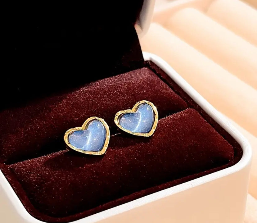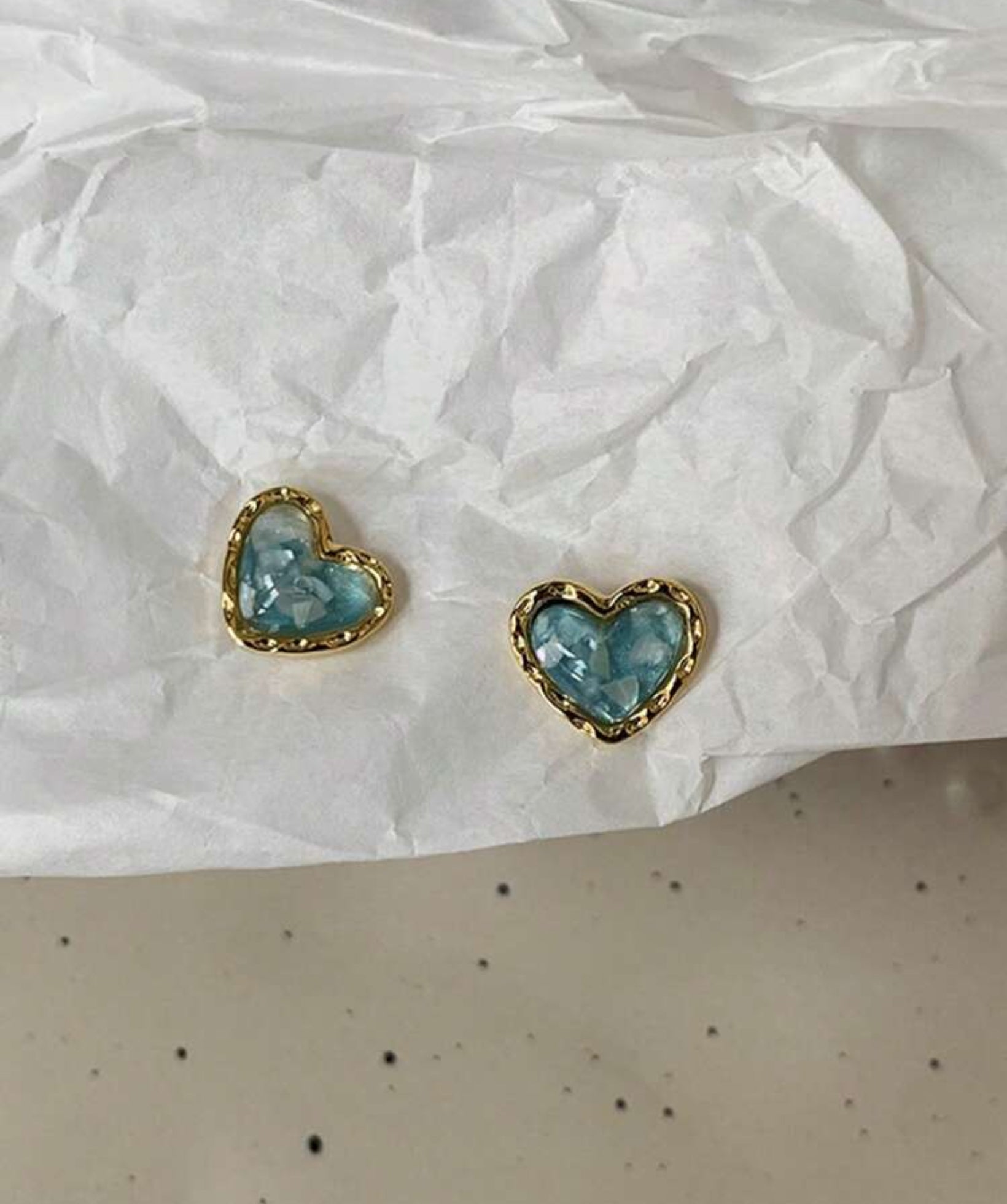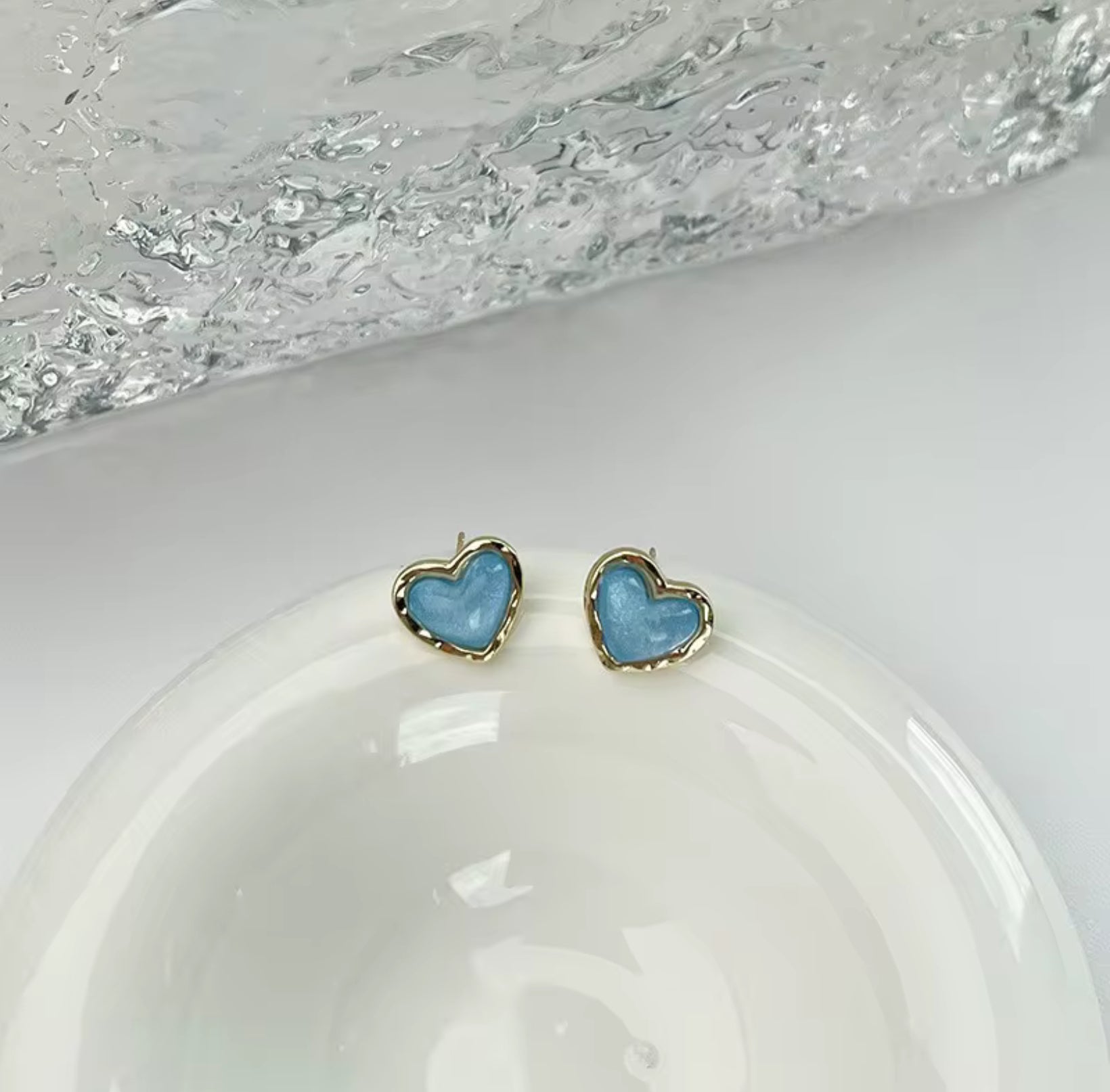 Add a cool, colorful accent to your look with our Aqua Blue Heart Earrings. These heart-shaped studs feature a glossy aqua blue enamel center framed by a smooth gold-tone border. Their bold yet simple design makes them perfect for everyday wear or adding a fun touch to your favorite outfit.