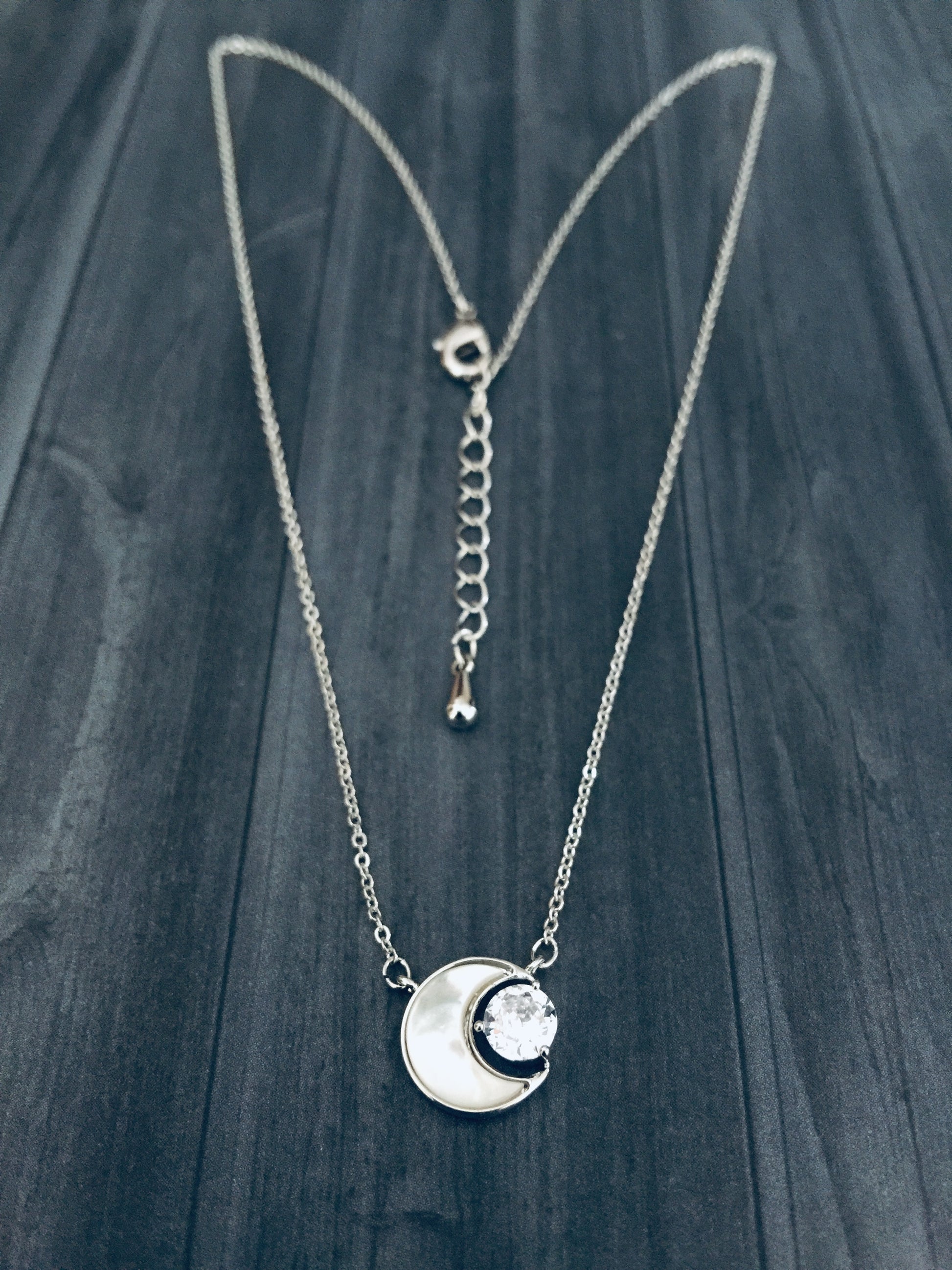 Shine like the stars with this unique crystal crescent moon charm necklace.