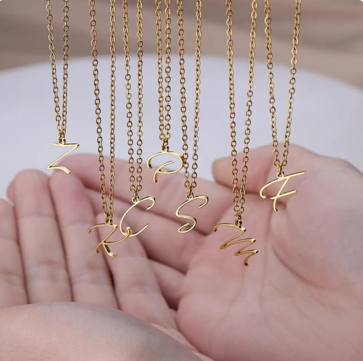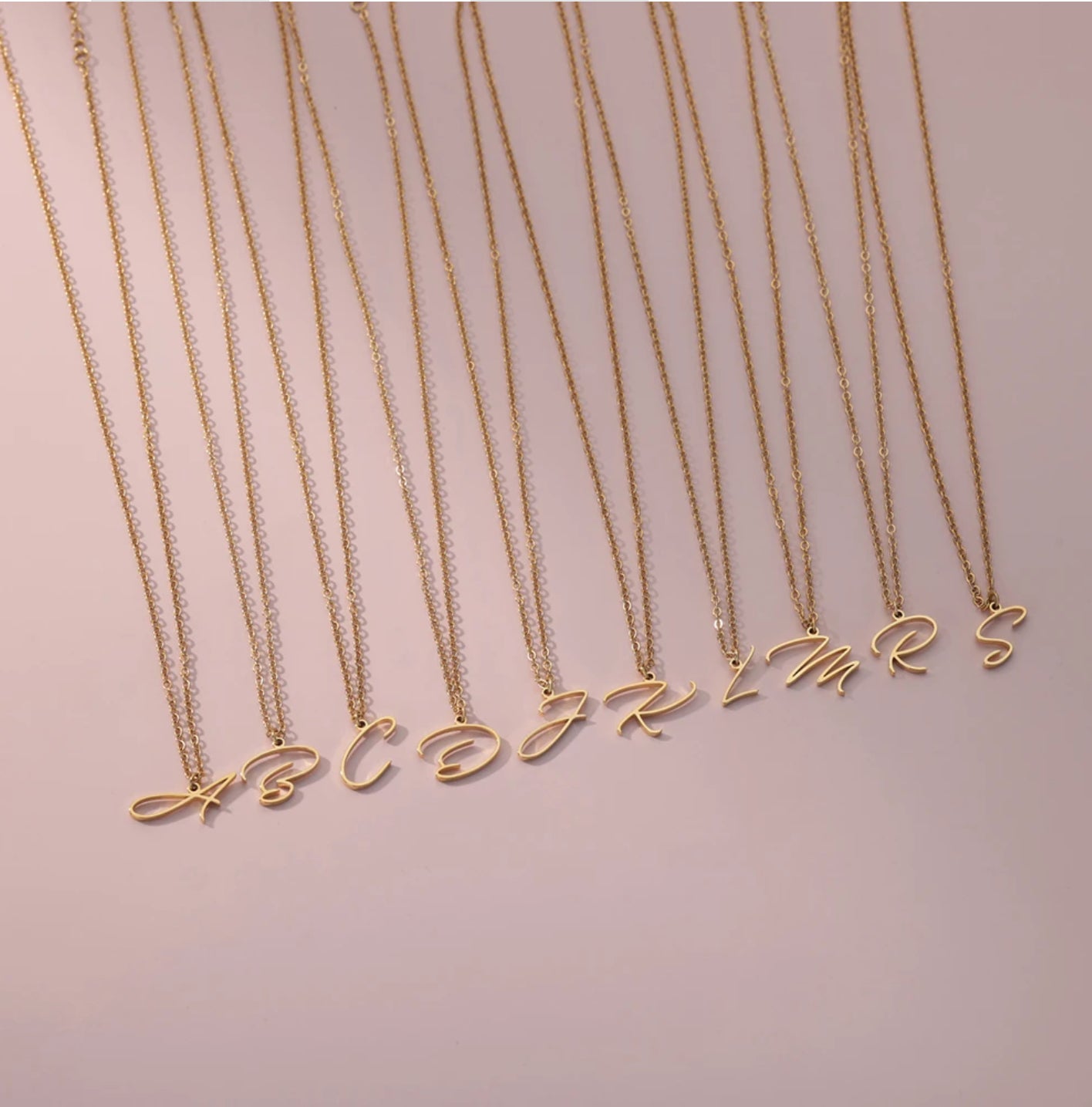 Elegant and personal, this cursive initial necklace adds a sophisticated touch to any look. A timeless piece perfect for everyday wear or as a meaningful gift.