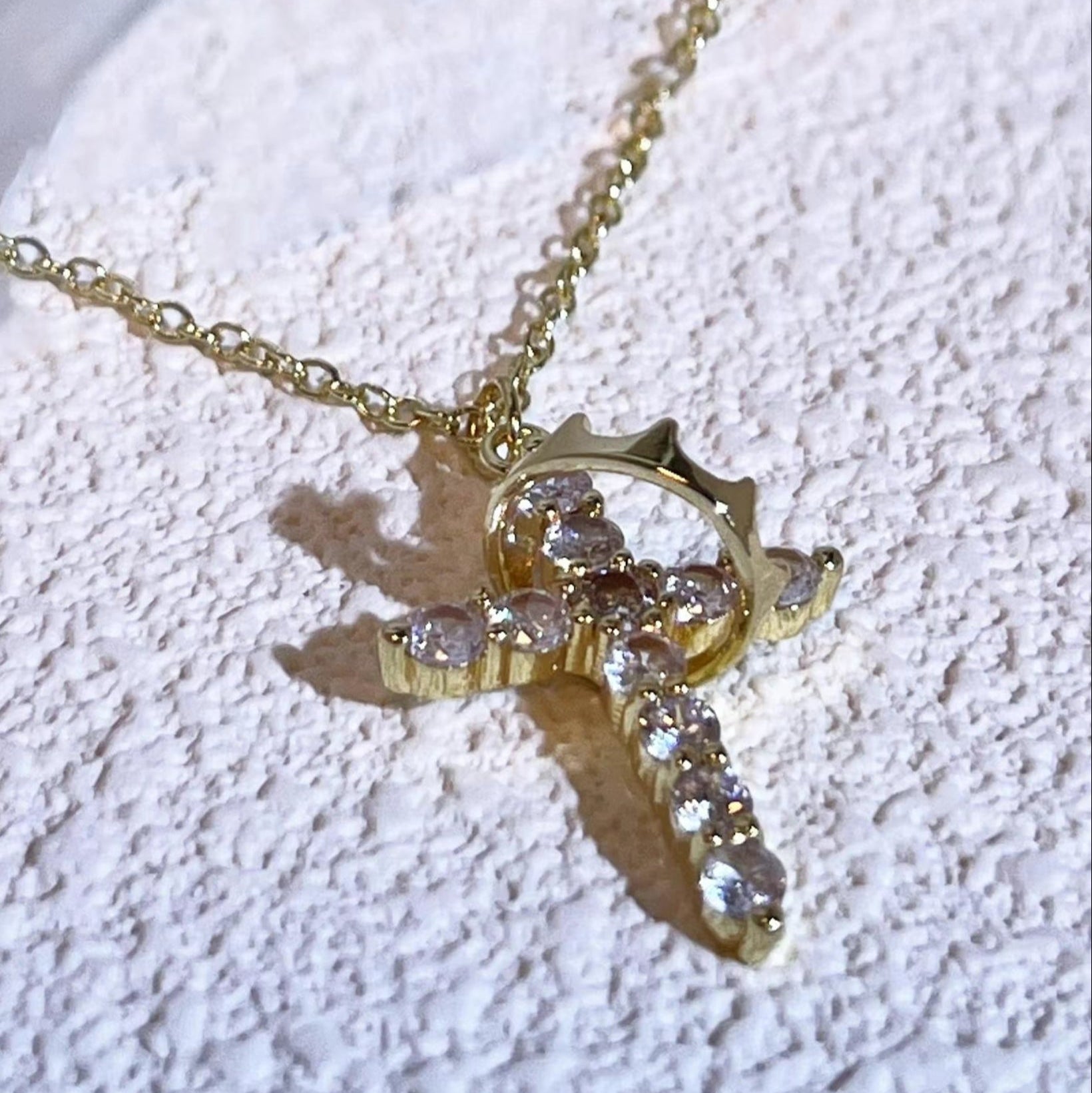 Pair it with our Gold Cross Crown Earrings for a complete inspirational set, or choose the Silver Cross Crown Faith Necklace as an alternative style within the collection.