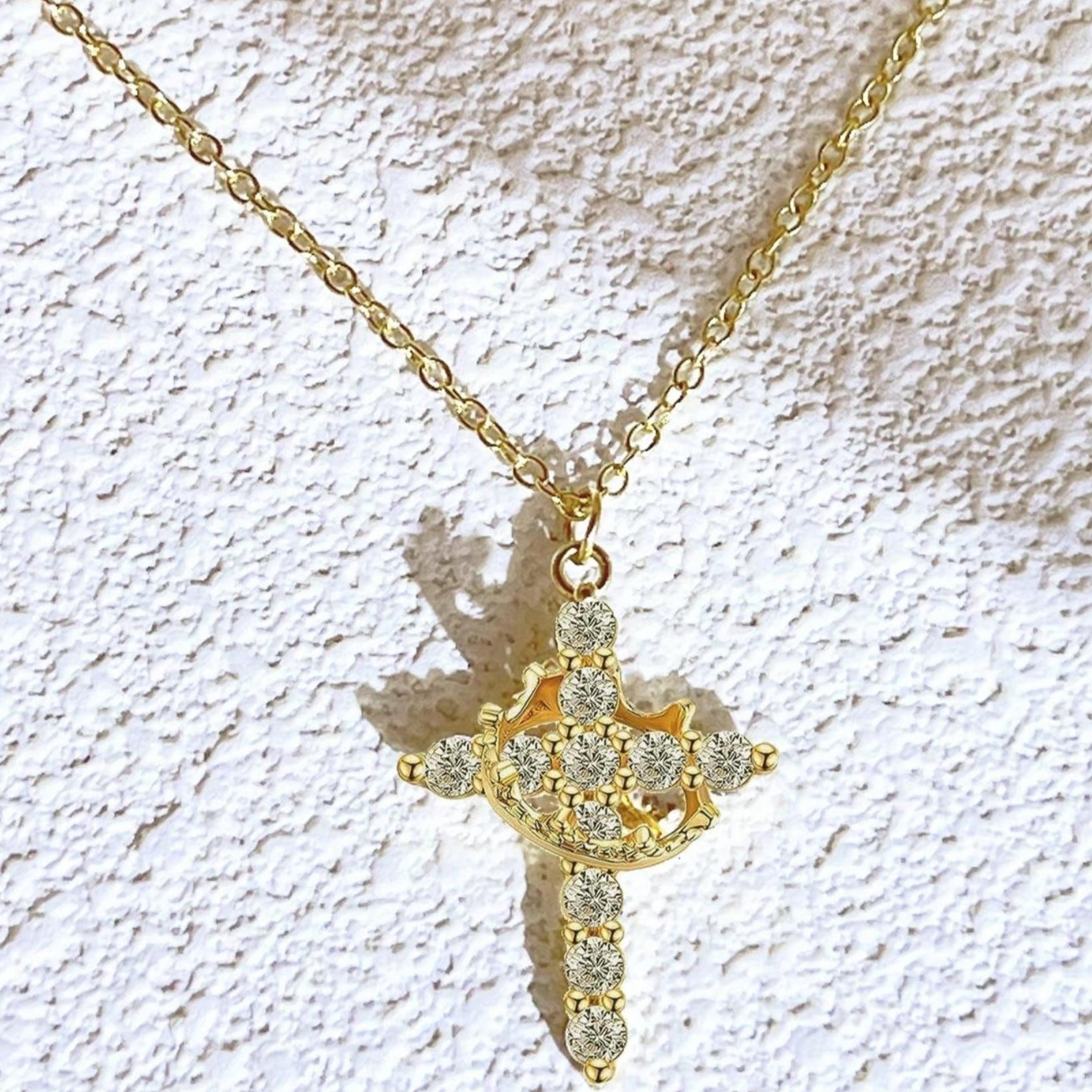 Elegant & Meaningful – Gold Cross Crown Faith Necklace with Rotating Crown