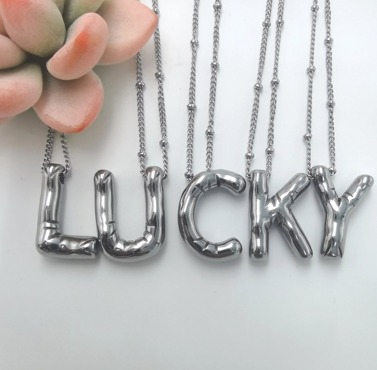 Personalized and radiant, this initial balloon necklace shines in a sleek silver finish, making it a meaningful and elegant piece for everyday wear. Perfect for showcasing your own initial or gifting a special touch to someone you love.