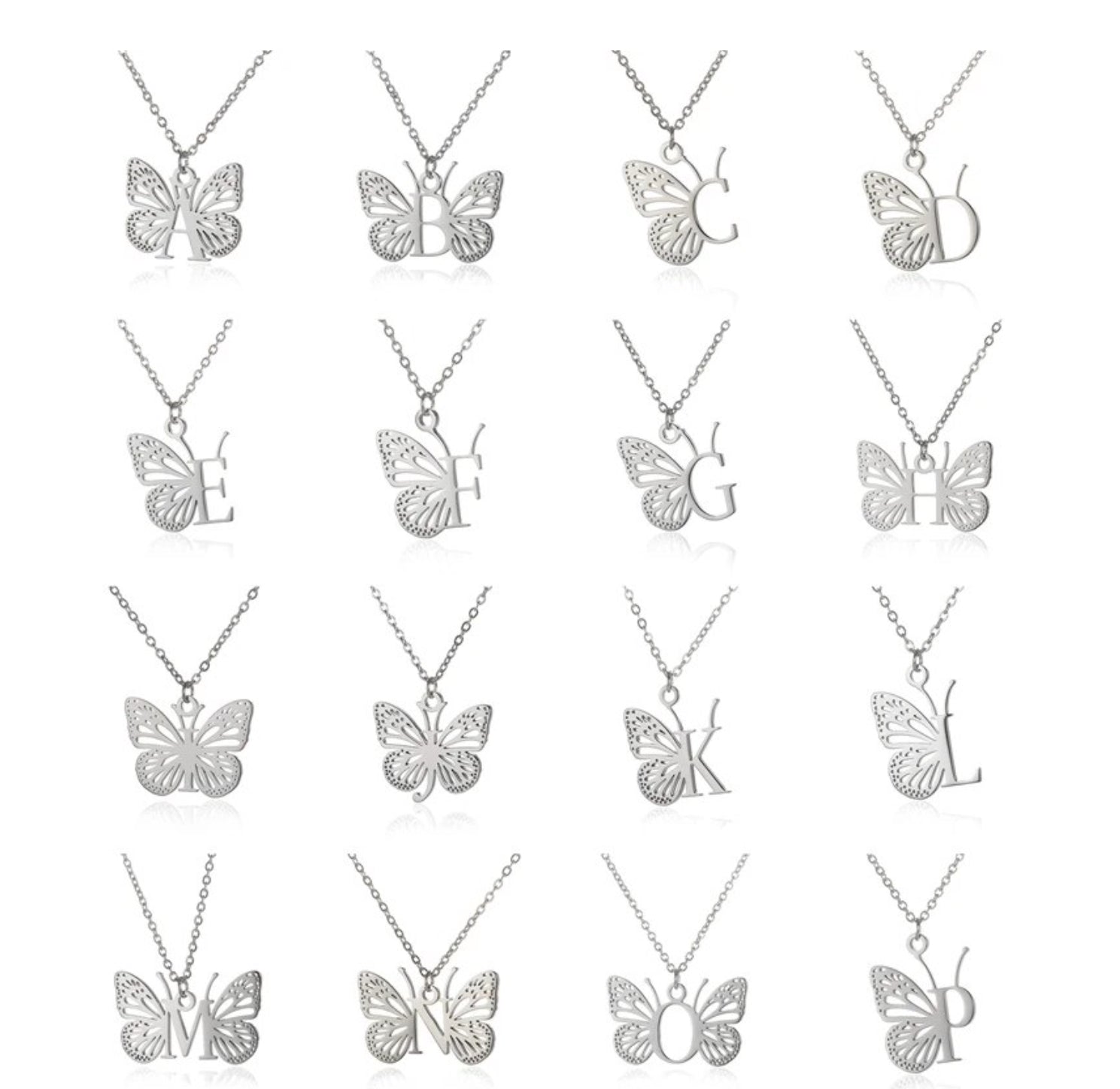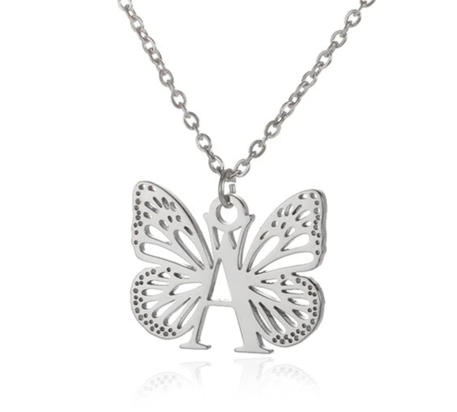Personalized and elegant, this butterfly necklace features a delicate initial charm, making it a meaningful and stylish accessory. A perfect gift or everyday piece to cherish.