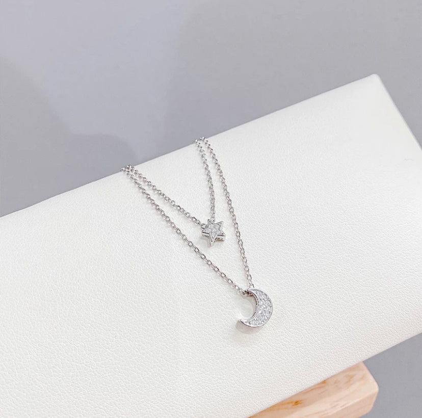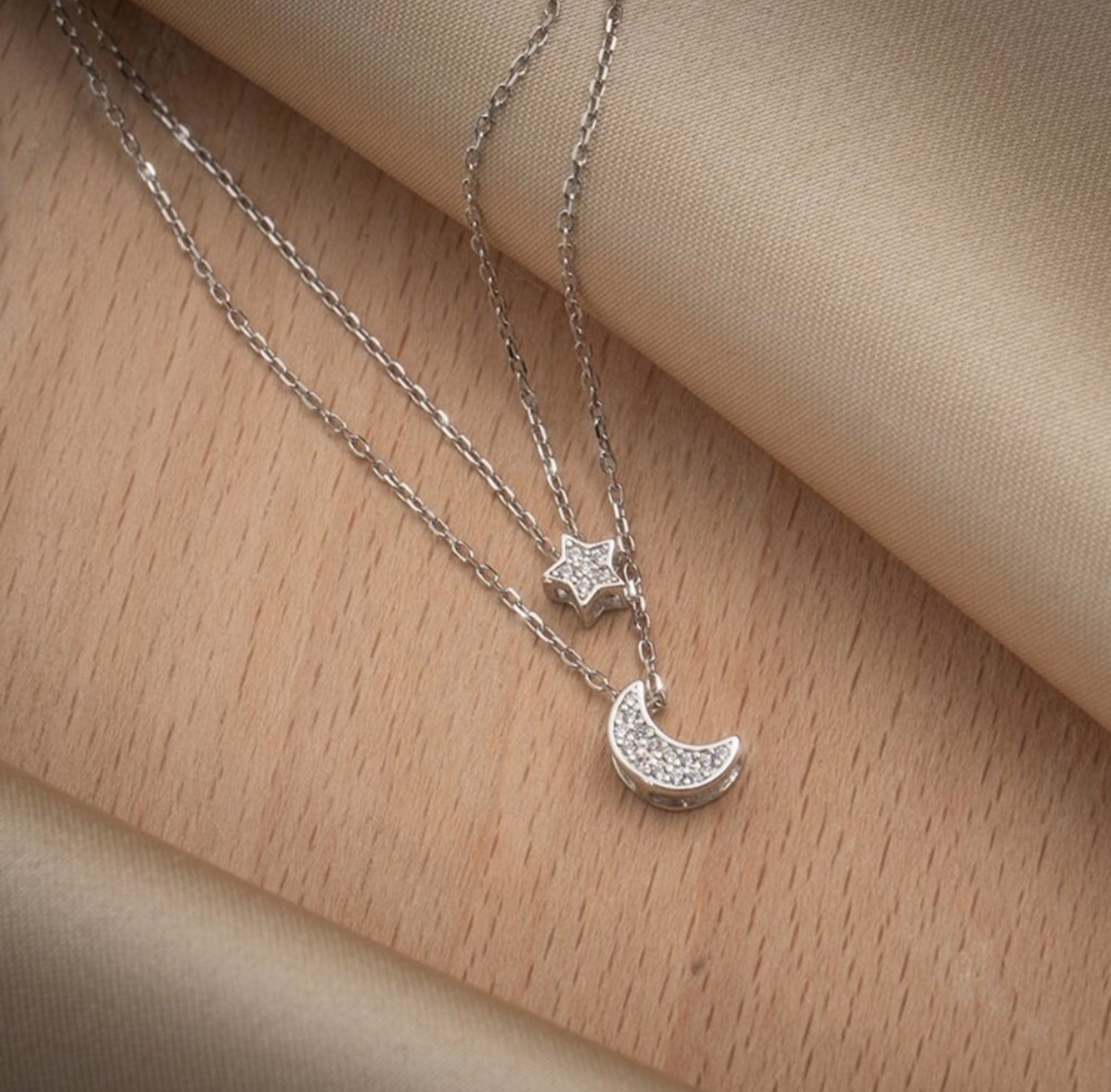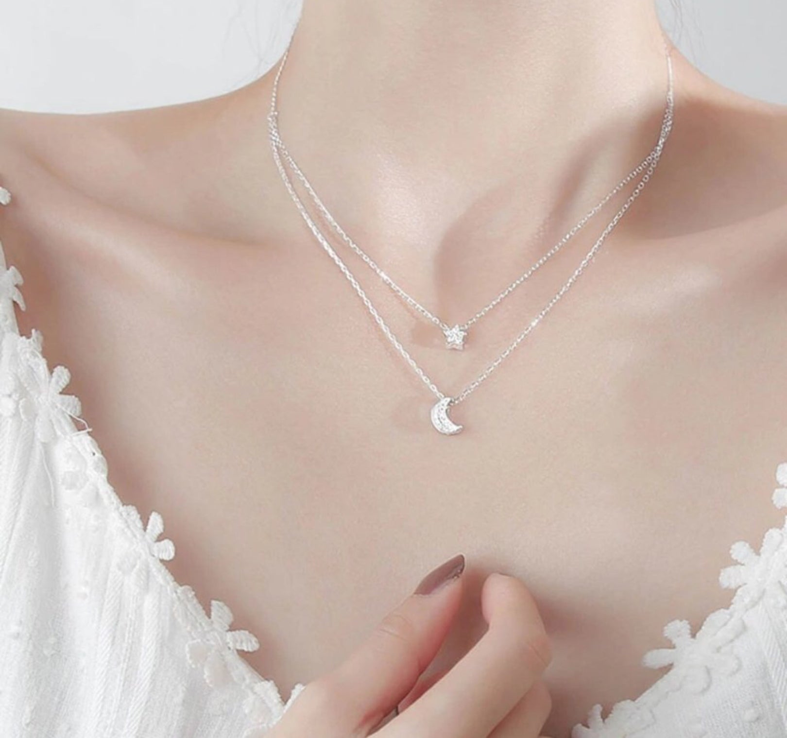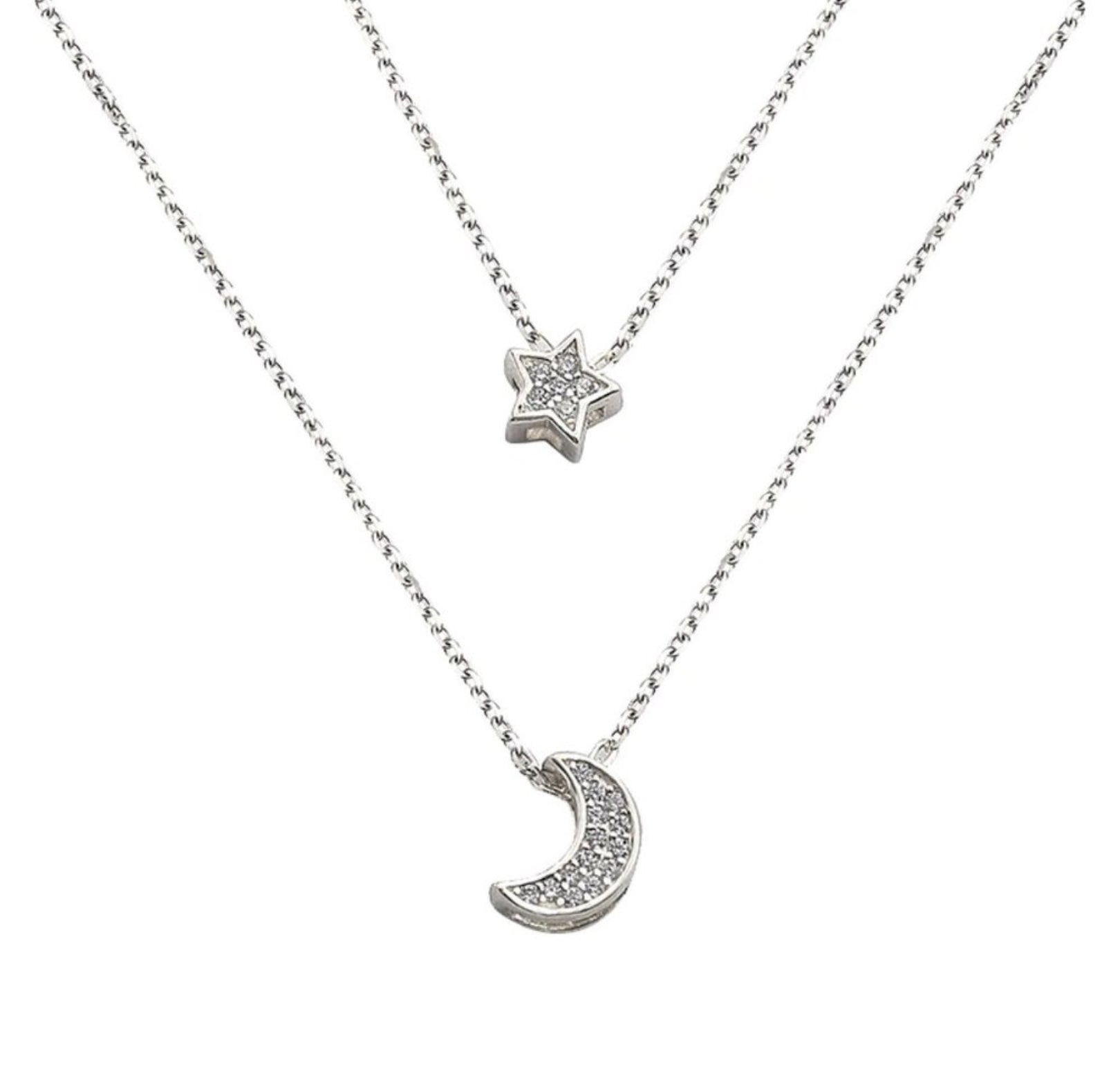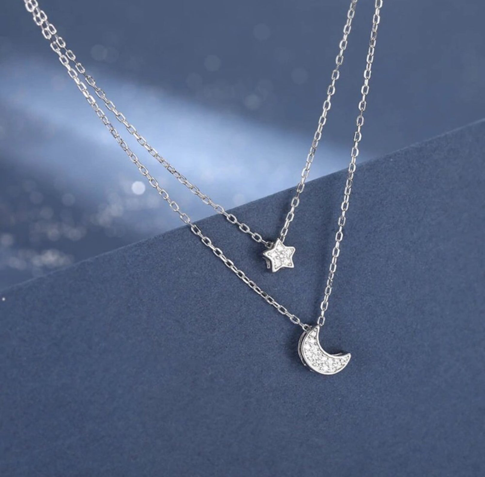 This Layered Moon Star Necklace is pretty, unique and will light up your jewelry collection.