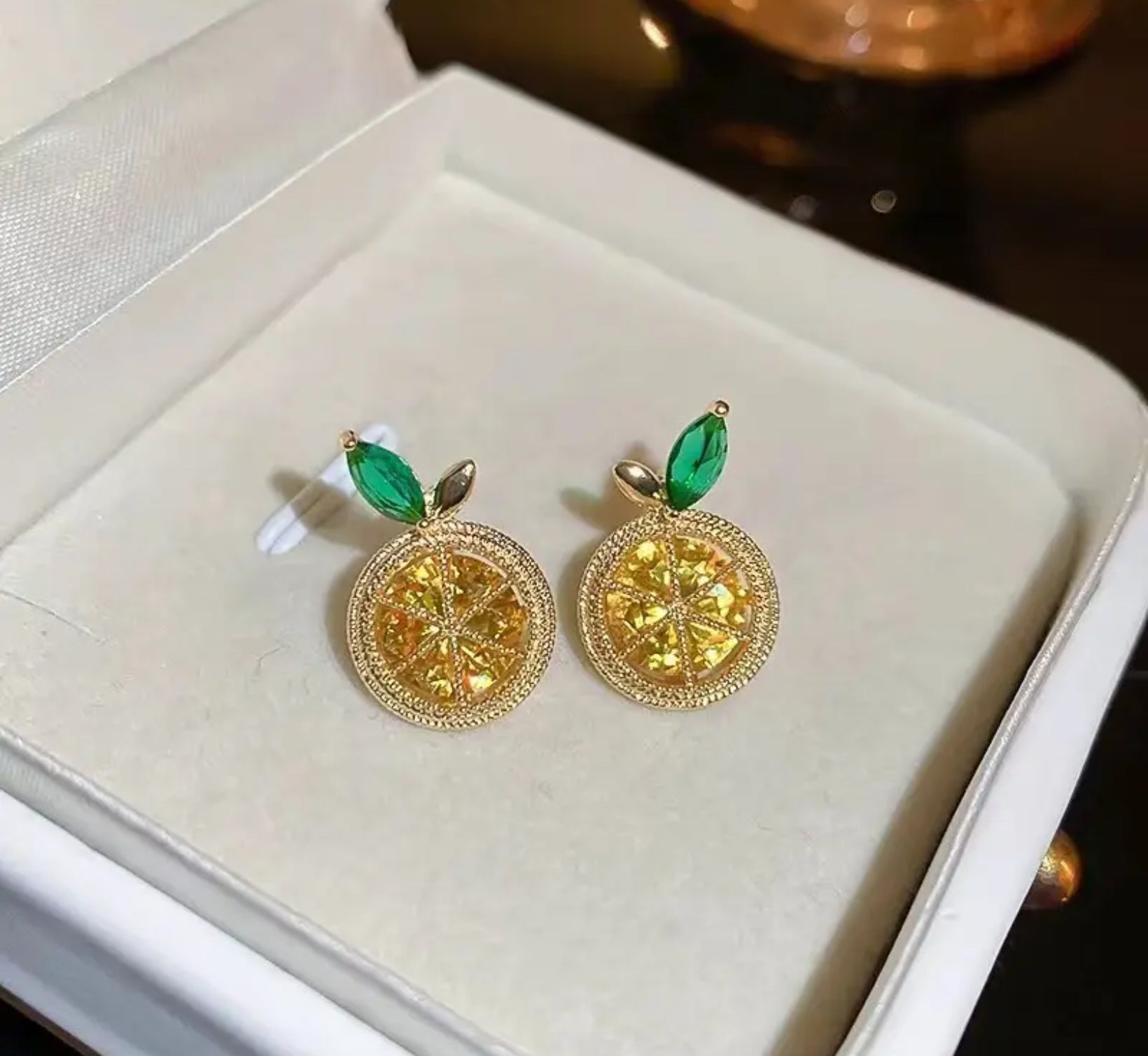 Brighten your day with our Lemon Gem Earrings. These cheerful gold-tone studs showcase a glossy yellow enamel lemon slice that’s as playful as it is chic.