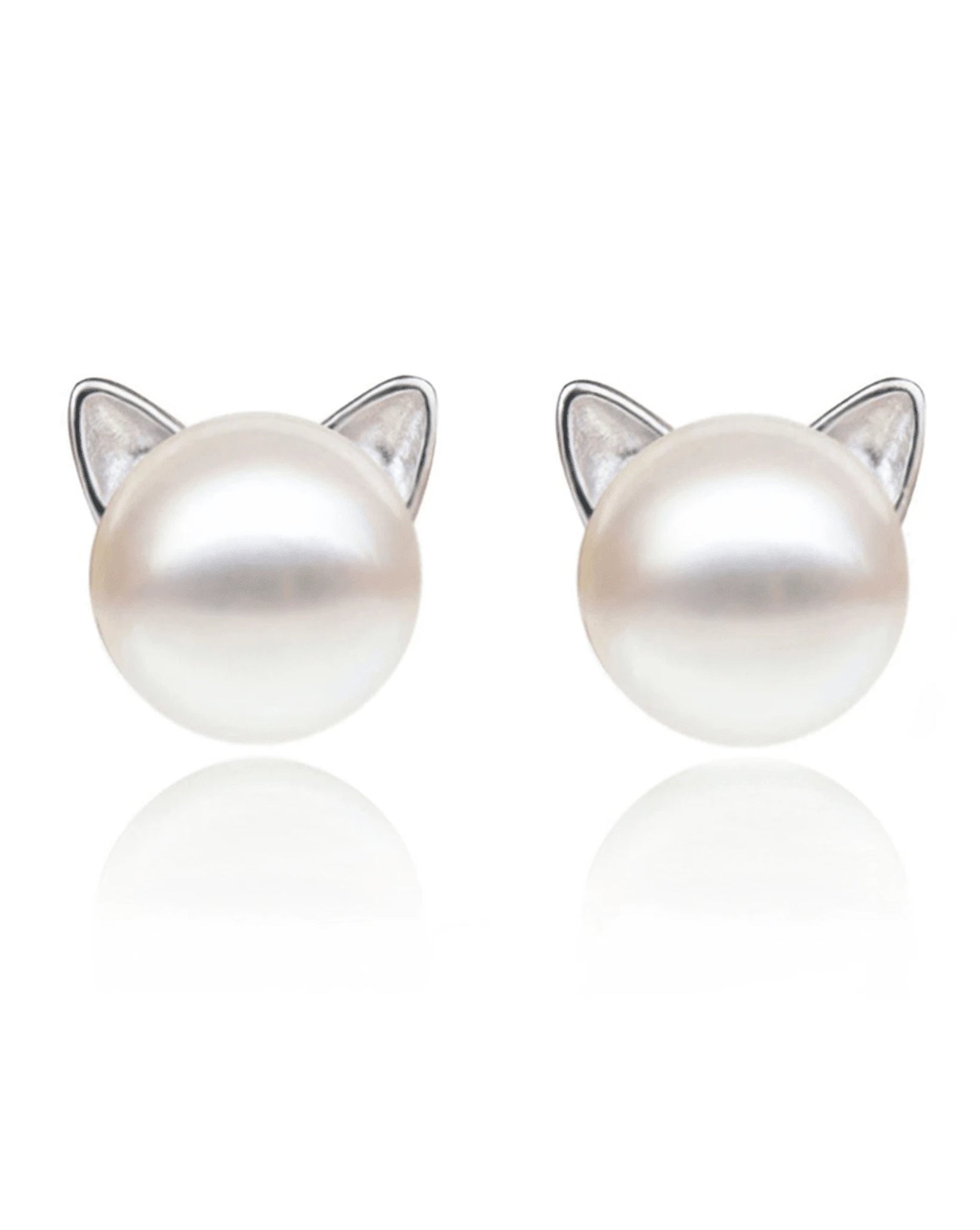 Add a whimsical sparkle with our Pearl Cat Earrings. These charming studs feature a pearl-like face with delicate silver cat ears and a subtle shine.