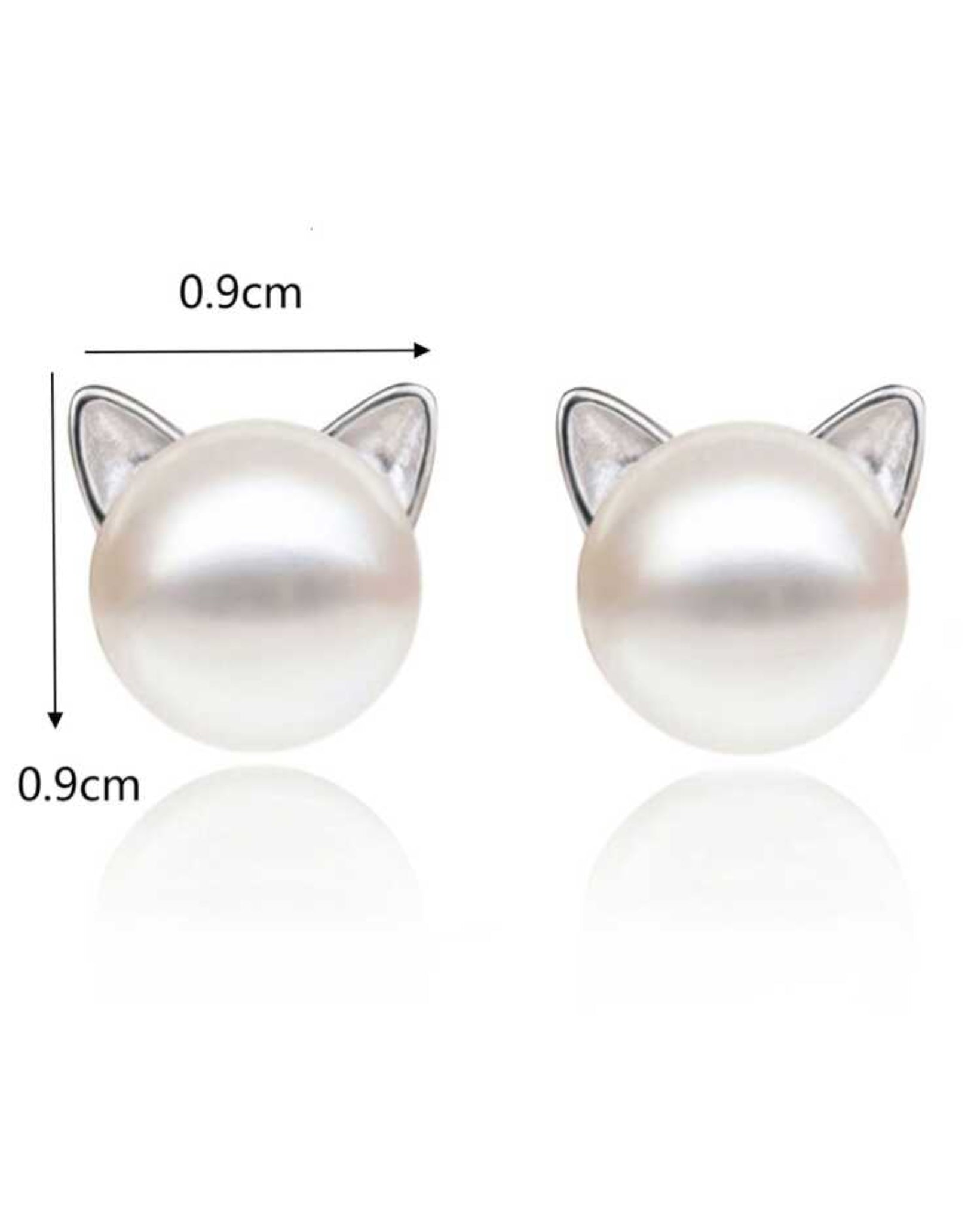 - Silver-tone studs with pearl-like cat design