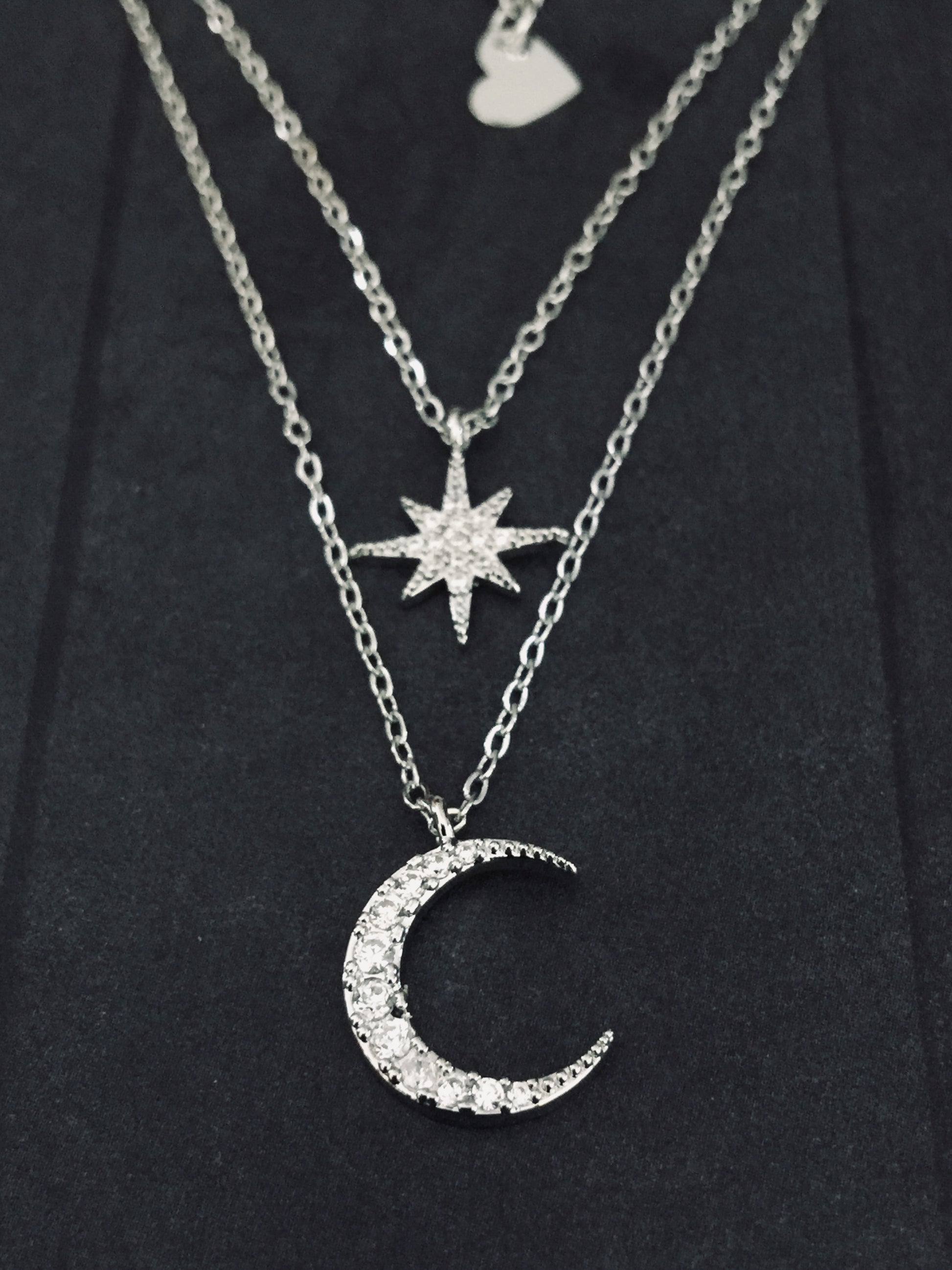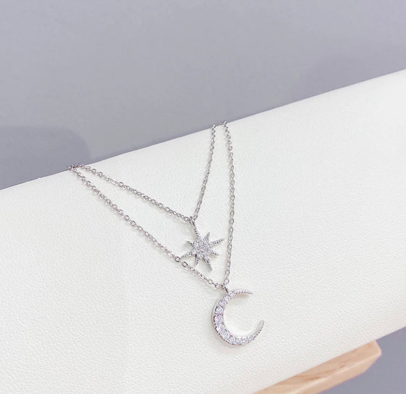 This Shimmering Moon Star Necklace is pretty, unique and will light up your jewelry collection.