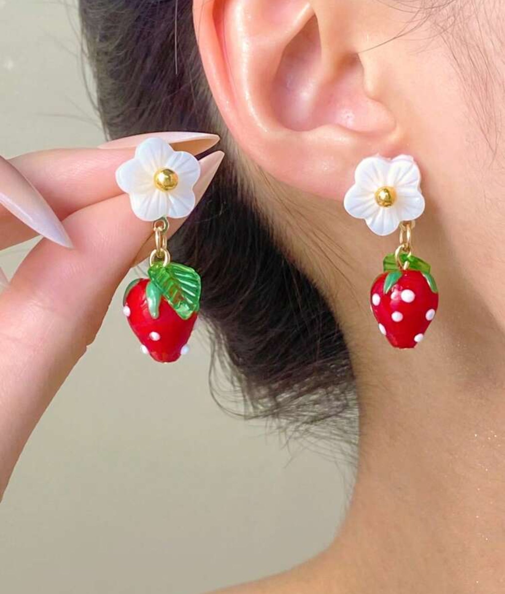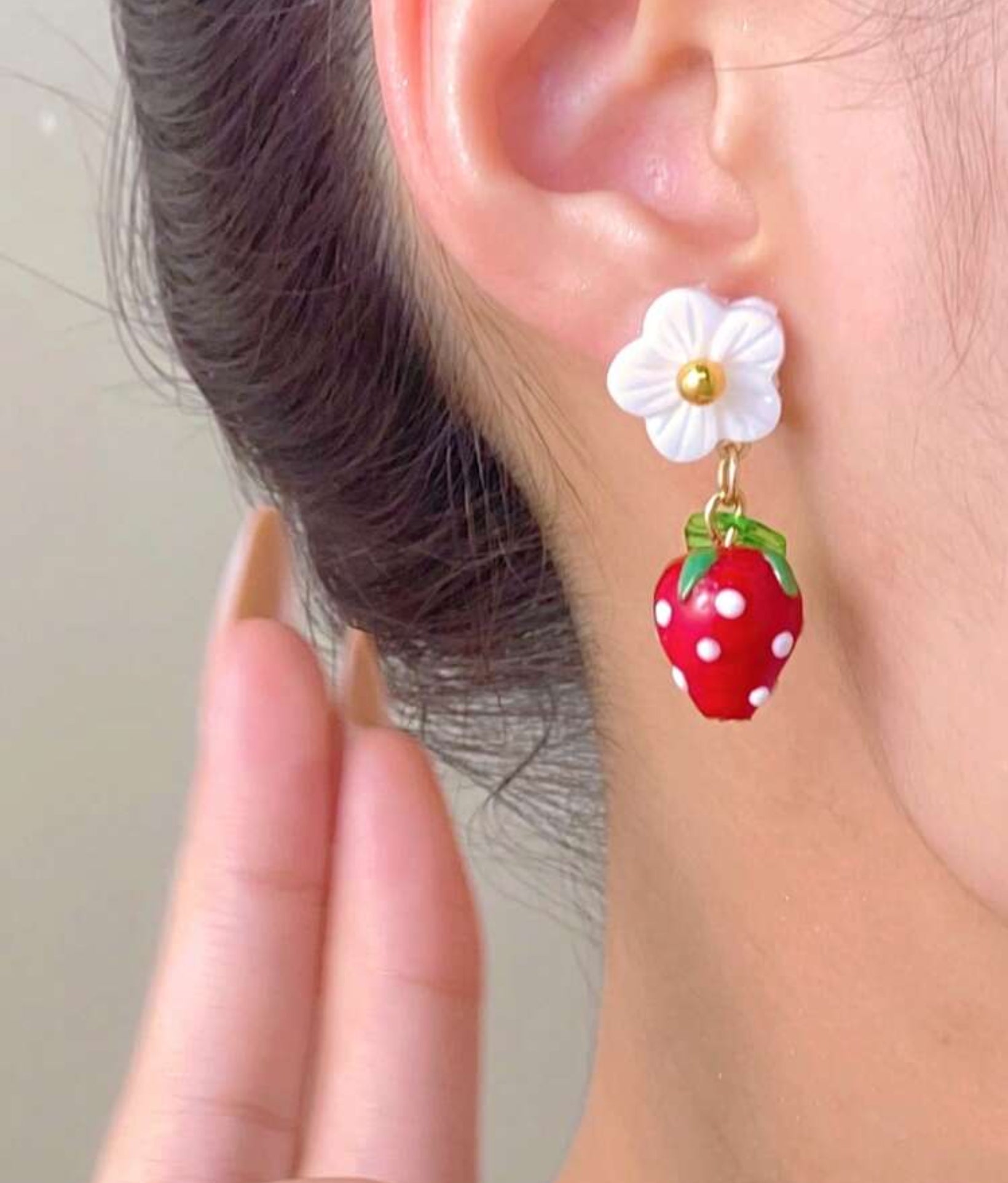 Add a sweet and delicate accent with our Strawberry White Flower Earrings. These gold-tone studs feature a glossy red strawberry topped with a soft white enamel flower, creating a fresh, garden-inspired look full of charm.