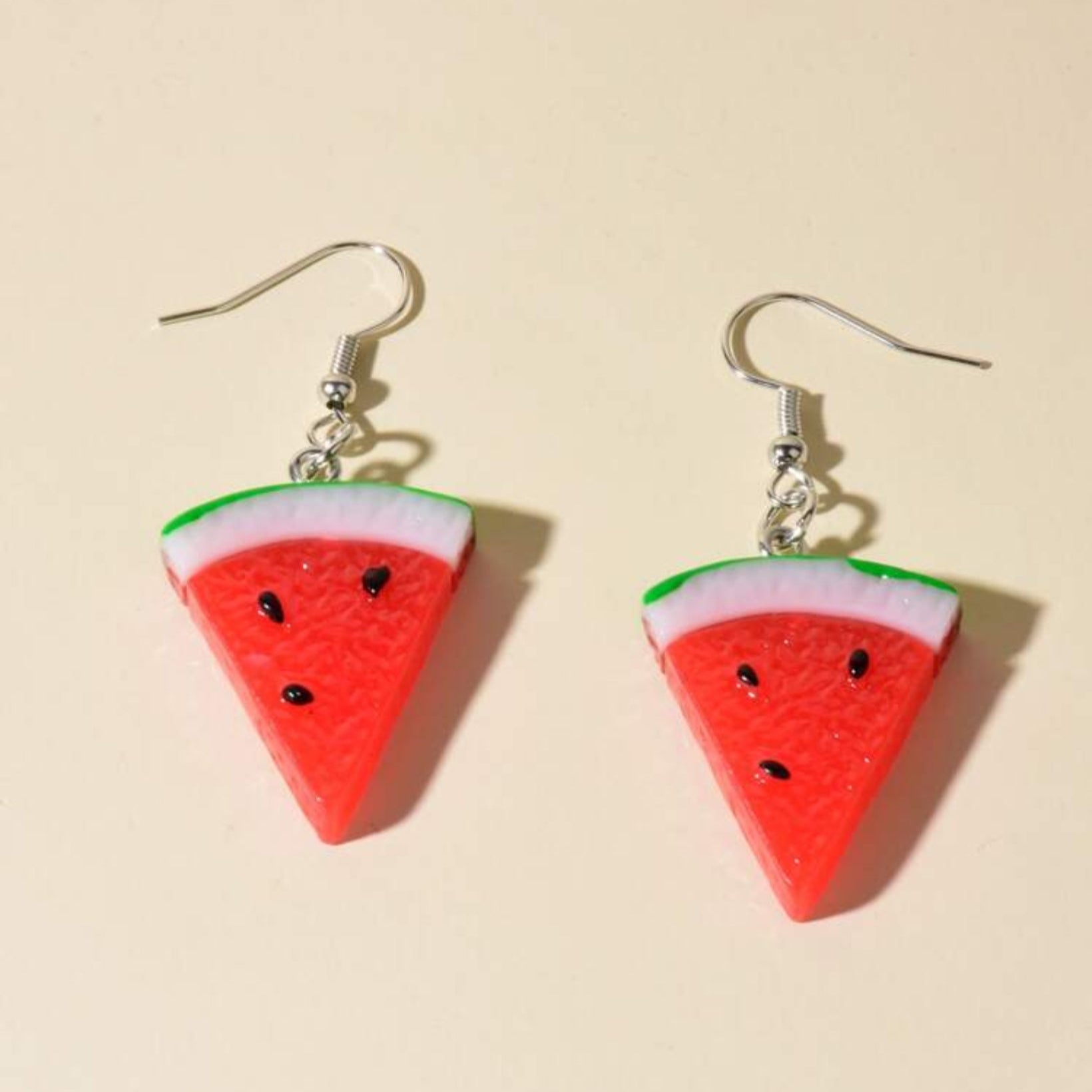 - Silver-tone dangle earrings with enamel watermelon slice