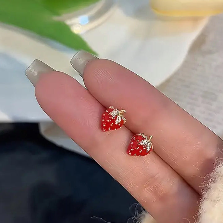 Add a sparkly twist to your accessory game with our Zircon Strawberry Earrings. These petite studs feature a classic strawberry shape with a glossy red finish, gold-toned seed details, and shimmering zircon-studded leaves for a hint of sparkle. Perfectly sized for a subtle statement, they’re sweet, stylish, and full of charm.